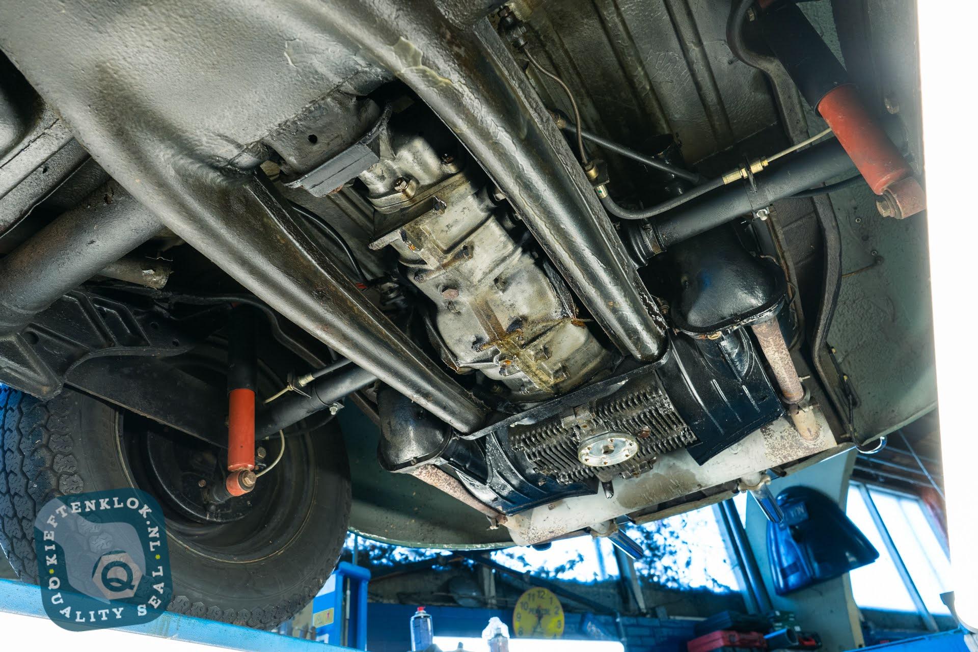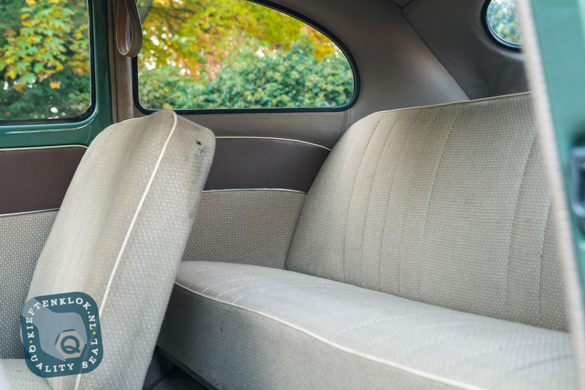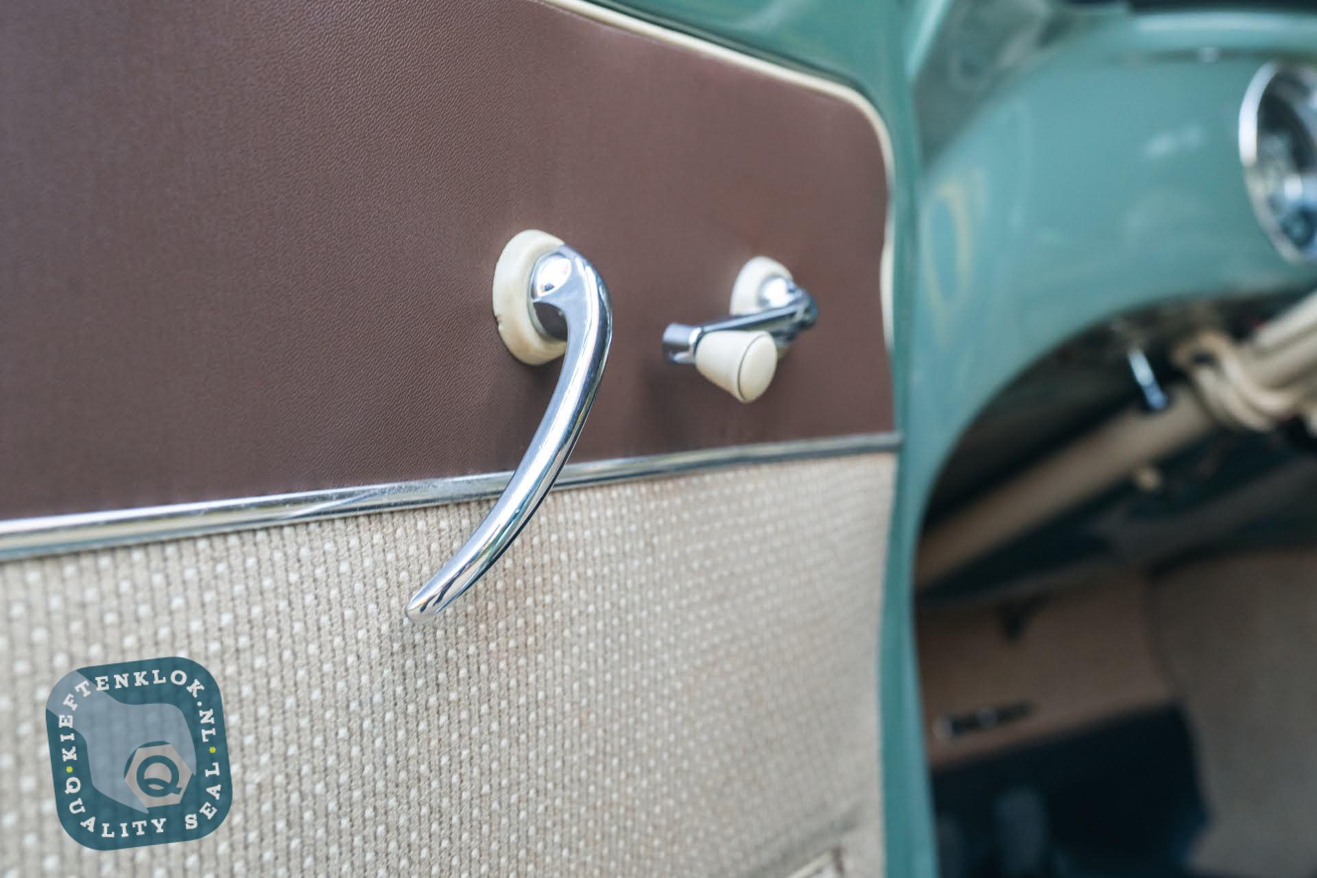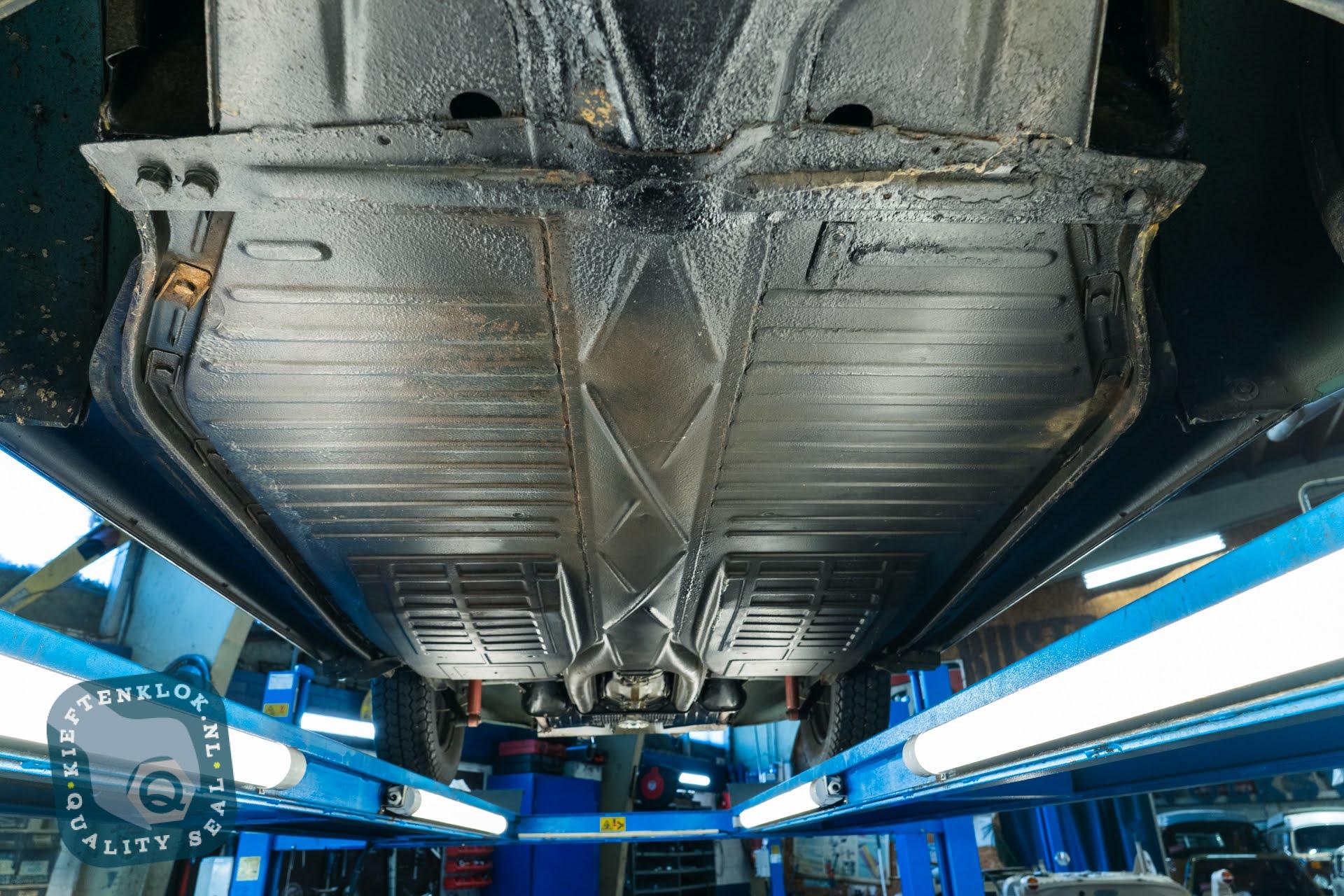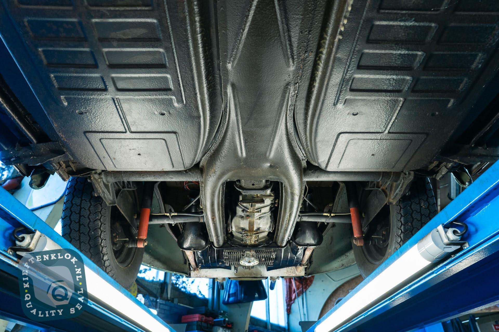Das Chassis befindet sich in ausgezeichnetem Zustand und verfügt noch über die originalen Bodenbleche – etwas, das man heutzutage nur noch selten findet. Auch das Interieur ist komplett original: Türverkleidungen und Sitzbezüge sind noch genau so, wie sie 1957 aus dem Werk kamen.