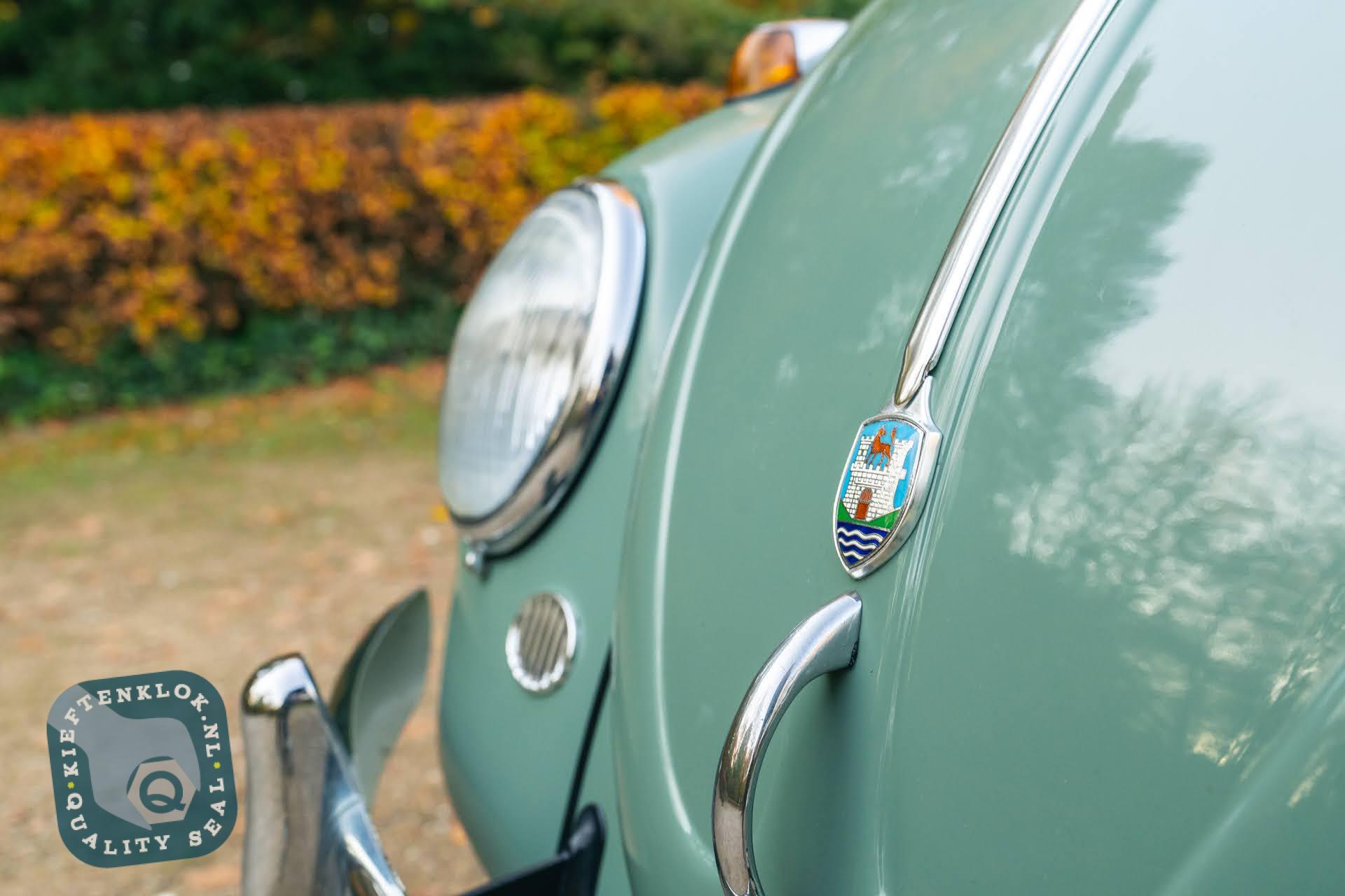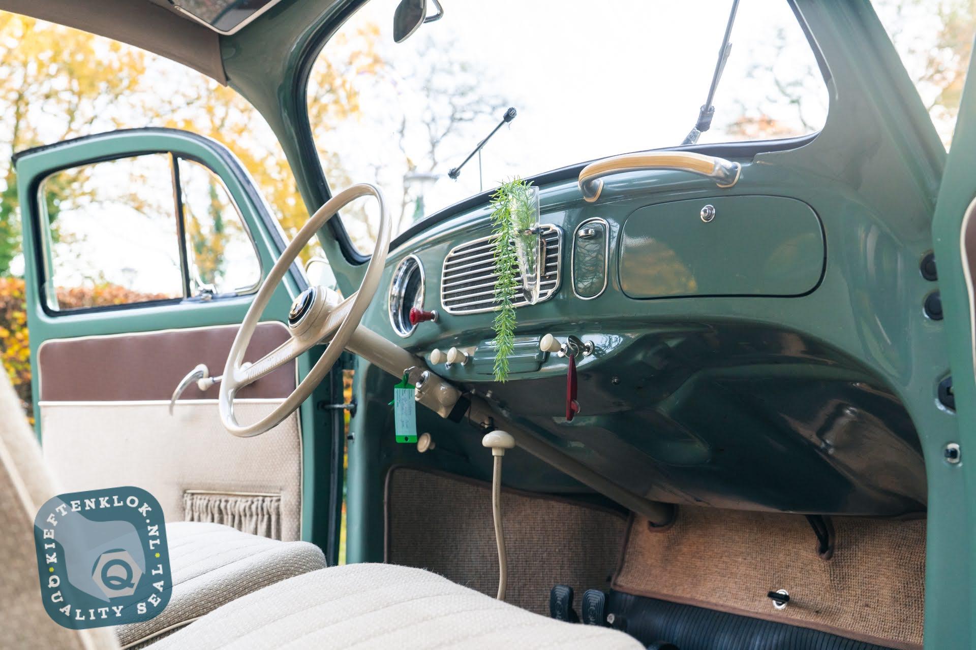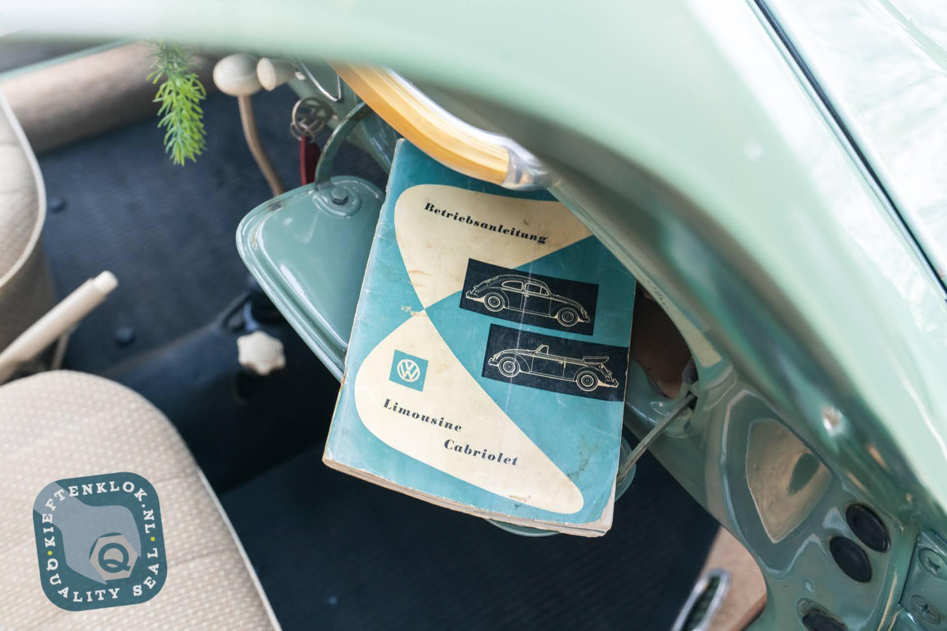 Dieser ovale Käfer ist außerdem mit mehreren charmanten Zubehörteilen aus der Zeit ausgestattet, darunter das optionale Lenkschloss, der Happich-Handgriff für den Beifahrer, das originale Handbuch sowie die charakteristische Blumenvase im Armaturenbrett.