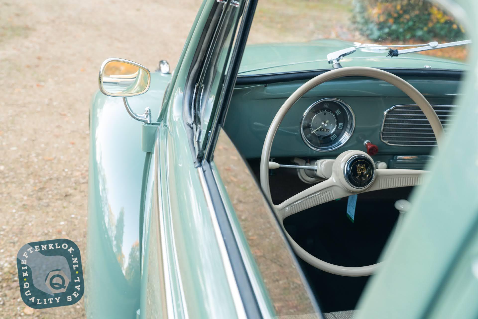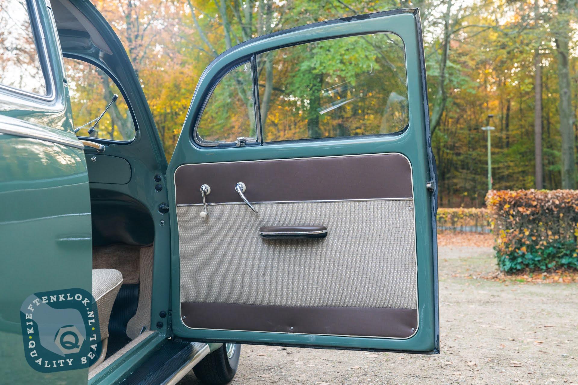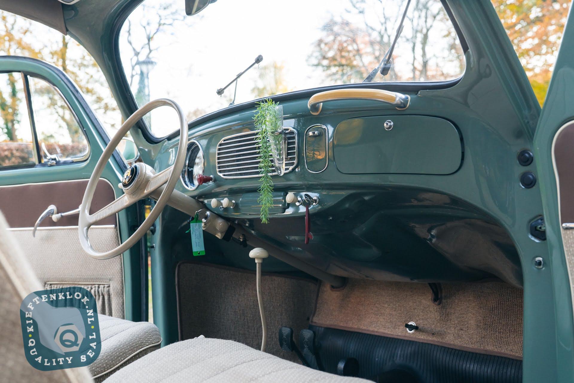 Dieser ovale Käfer ist außerdem mit mehreren charmanten Zubehörteilen aus der Zeit ausgestattet, darunter das optionale Lenkschloss, der Happich-Handgriff für den Beifahrer, das originale Handbuch sowie die charakteristische Blumenvase im Armaturenbrett.