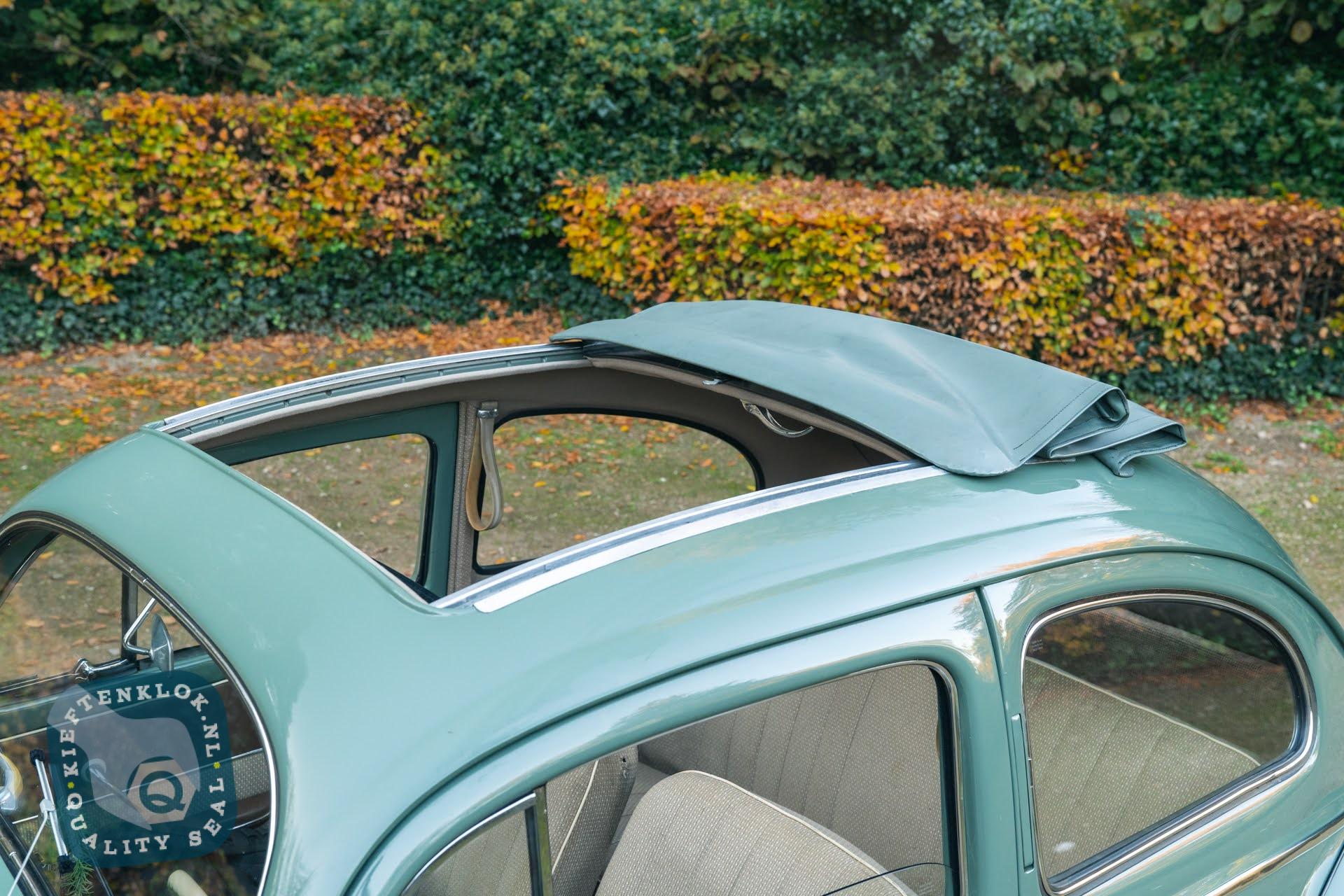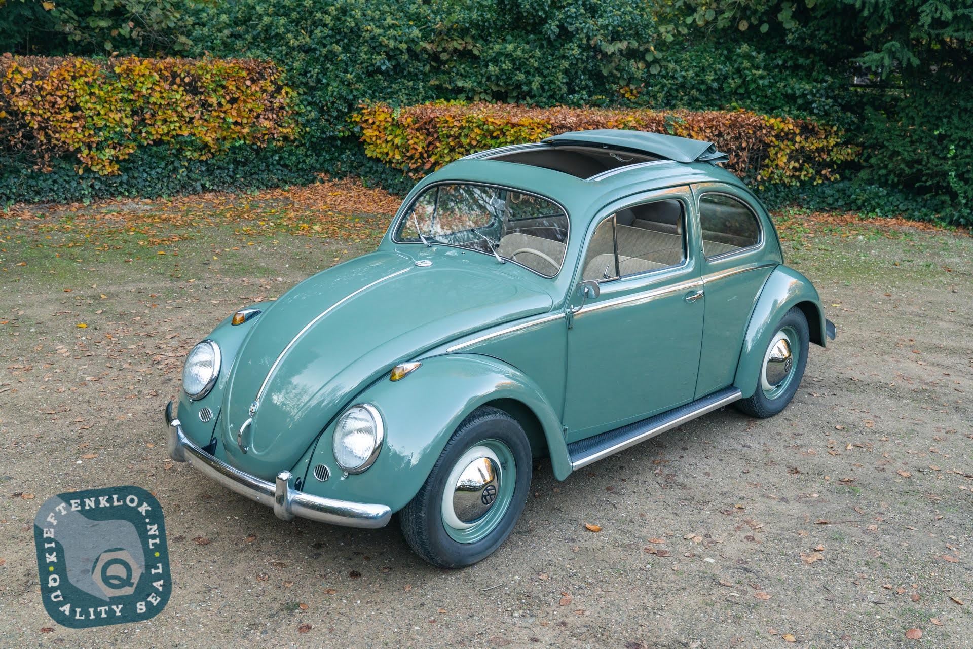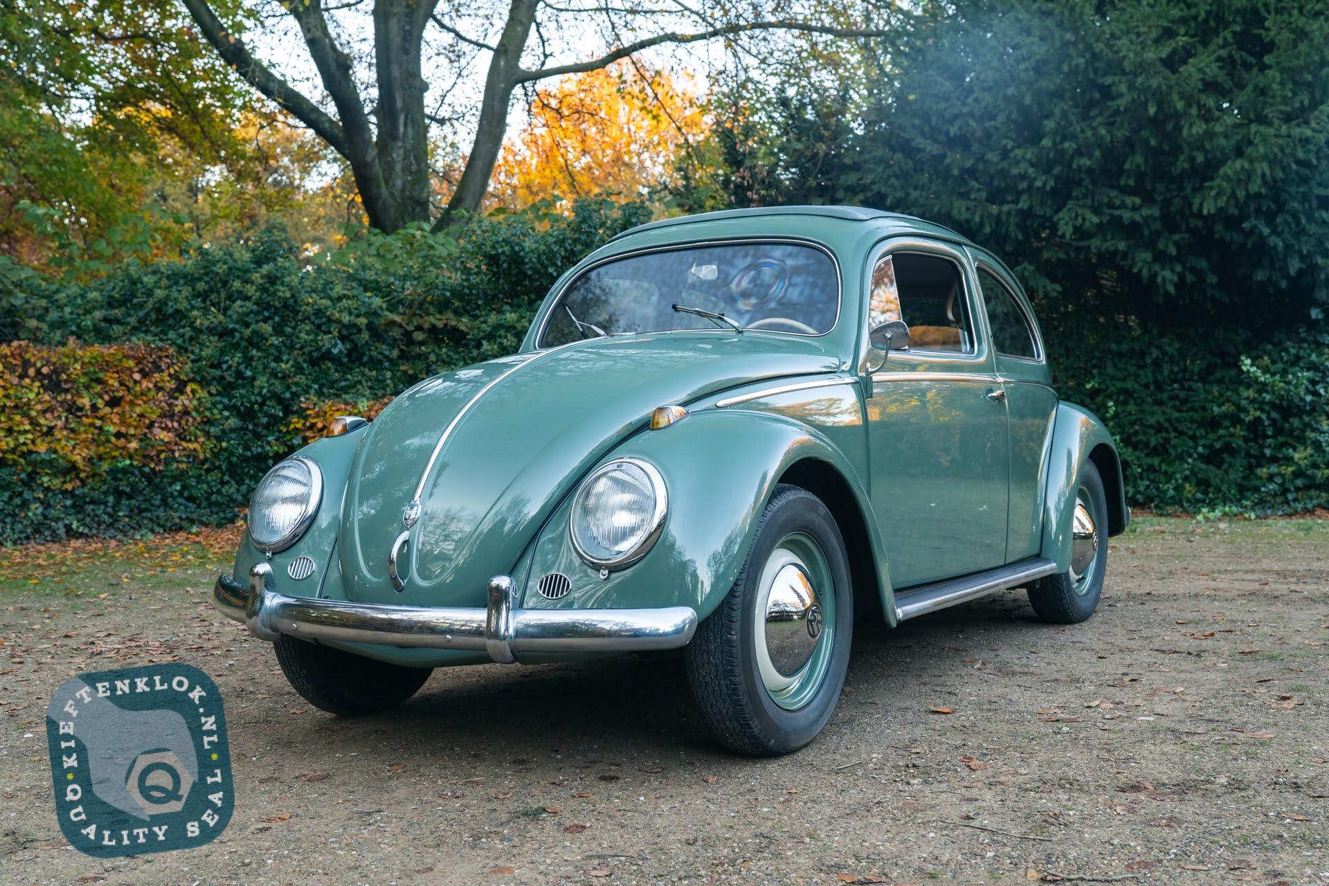 Dieser charmante ovale Bug mit Schiebedach wurde einmal in seinem ursprünglichen Agavegrün lackiert und strahlt genau den authentischen Charakter aus, den jeder Liebhaber schätzt.