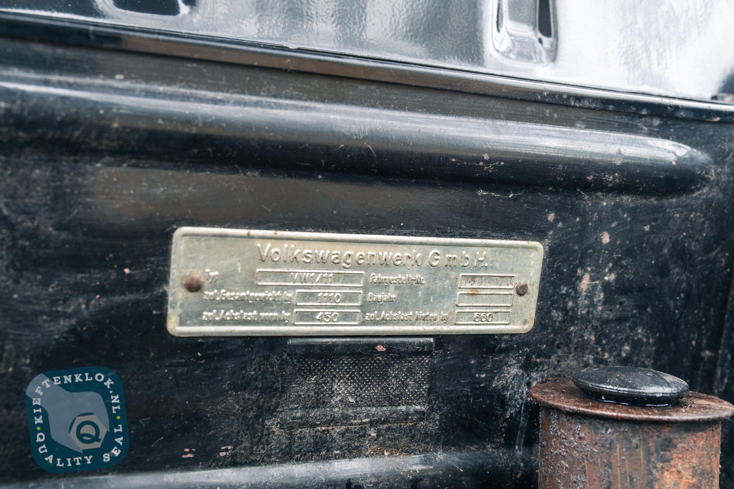 Scheunenfund. Stand seit 1986. Wir haben ihn zum Laufen und Bremsen gebracht. Der Motor stammt aus derselben Baureihe wie die Nummer auf dem Typenschild. Es ist also wahrscheinlich noch der Originalmotor! Das Zertifikat wurde bei Volkswagen beantragt und wird mit dem Auto ausgehändigt. Es handelt sich um ein unrestauriertes Originalfahrzeug. Eine kleine Schweißstelle, ansonsten ein grundsolides Auto. Originale Innenausstattung, 30-PS-Motor usw. Aufgrund der langen Standzeit sind einige technische Arbeiten erforderlich. Das Auto fährt und bremst, eine umfassende Wartung wird jedoch empfohlen.
