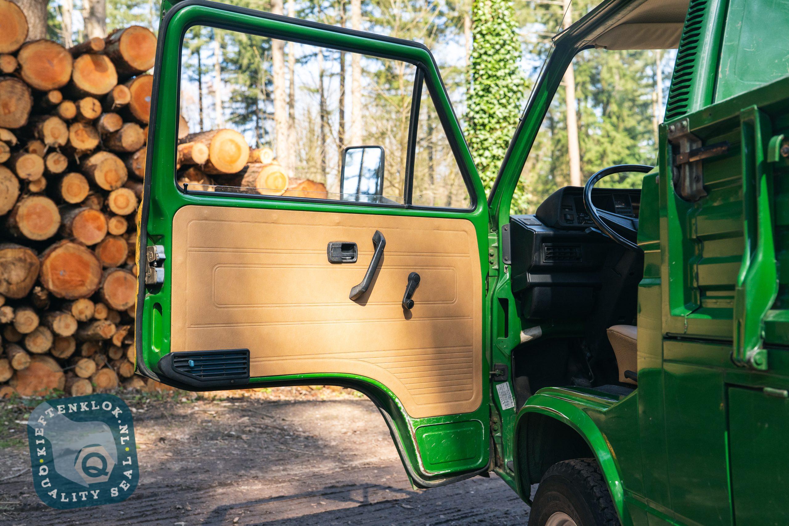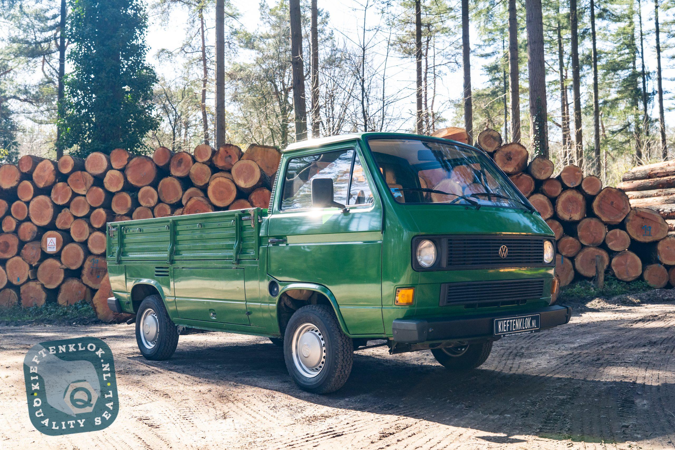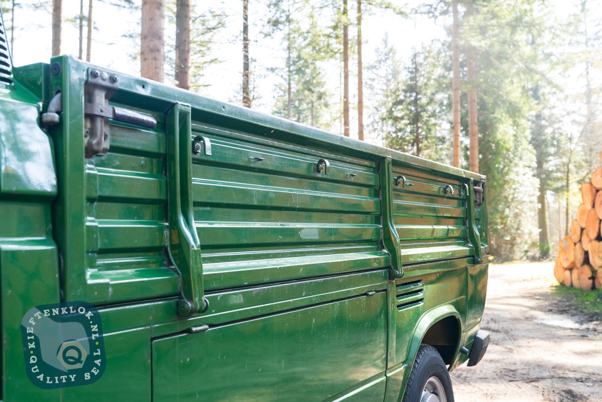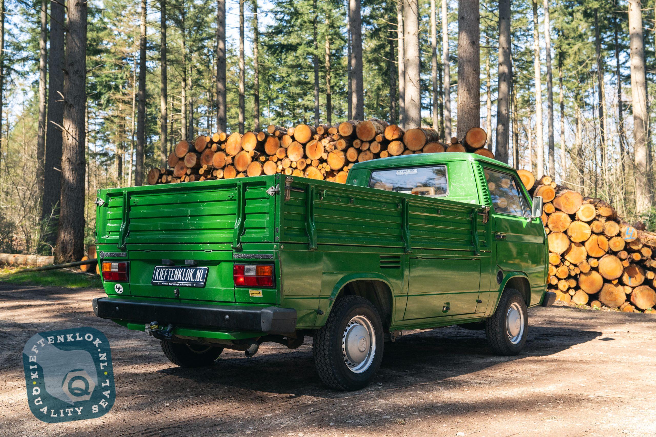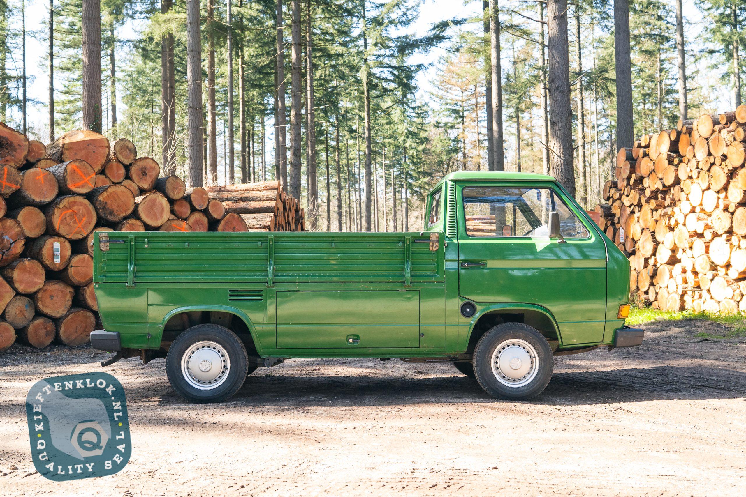Dieser T3 wurde vermutlich in der Forstwirtschaft eingesetzt und 2008 trocken eingelagert. Das Ergebnis ist ein robuster Pick-up mit schöner Patina – ein echtes Arbeitstier.